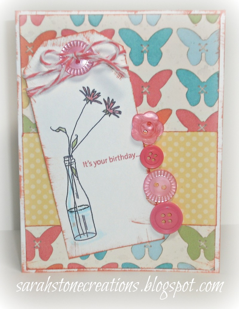 I used the CardPatterns sketch. I really knew how I wanted to make this card, and I think it woulda been great, but my stamping didn't turn out so well. Here it is: